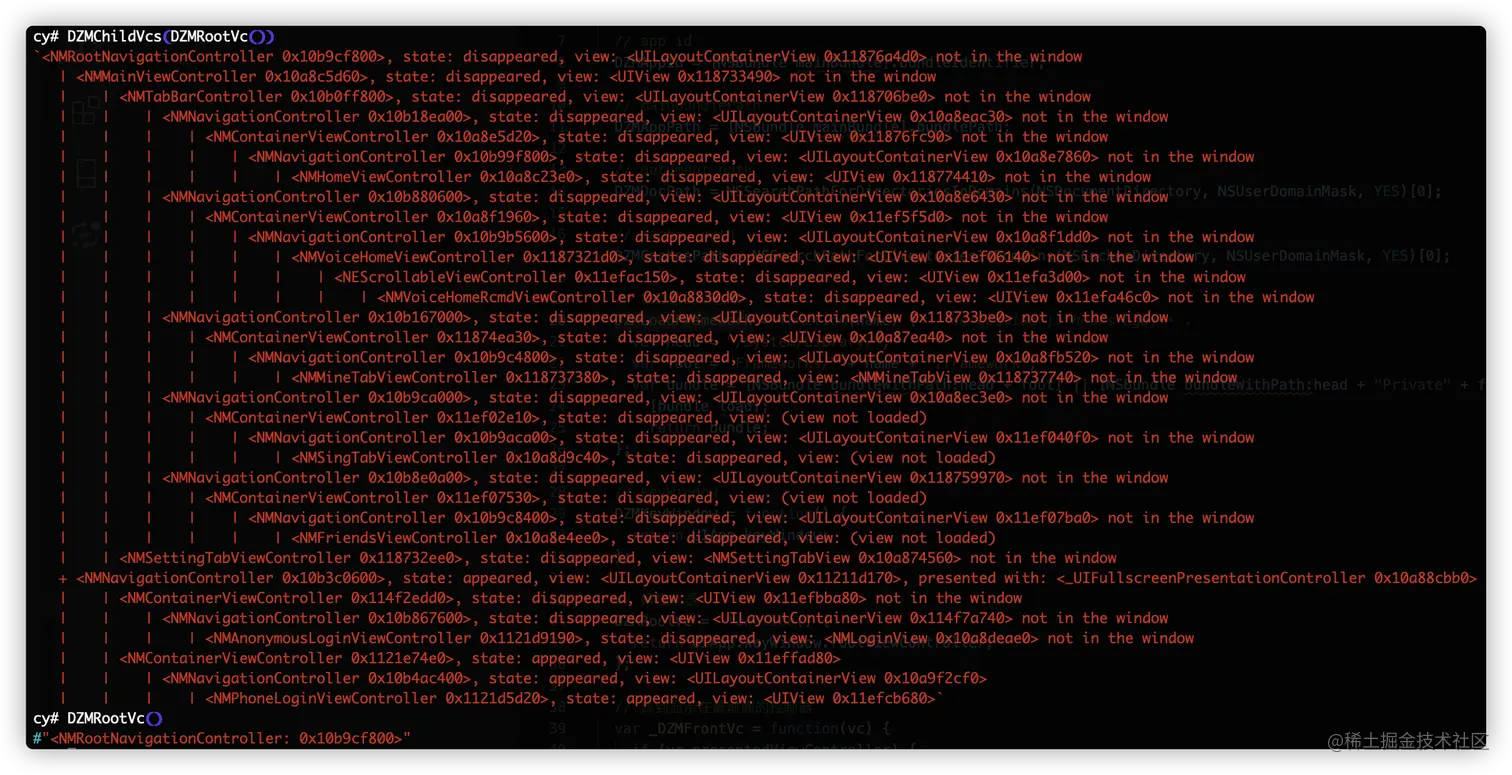 七、DZMChildVcs(vc) 测试:获取指定控制器里面的所有子控制器,还要其他获取子视图的方法就自己去试试了,例如 DZMSubviews(view)