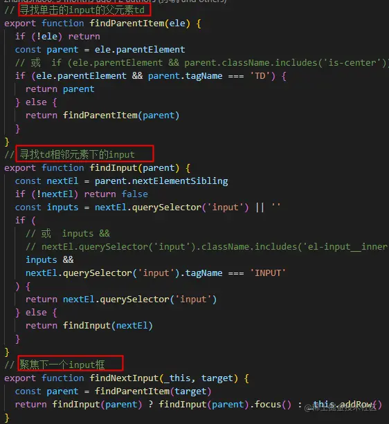 以此往上找此input父元素td的dom;然后找父元素td相邻的td;相邻td再往内找input;找到就聚焦;以此类推 找不到就新增行(换行)
