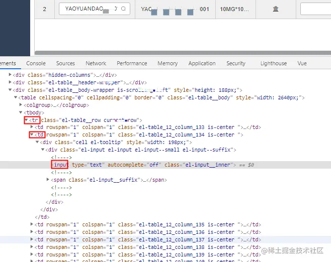table中构造: 父元素往内构造如下 tbody->tr->td->div->div..->input