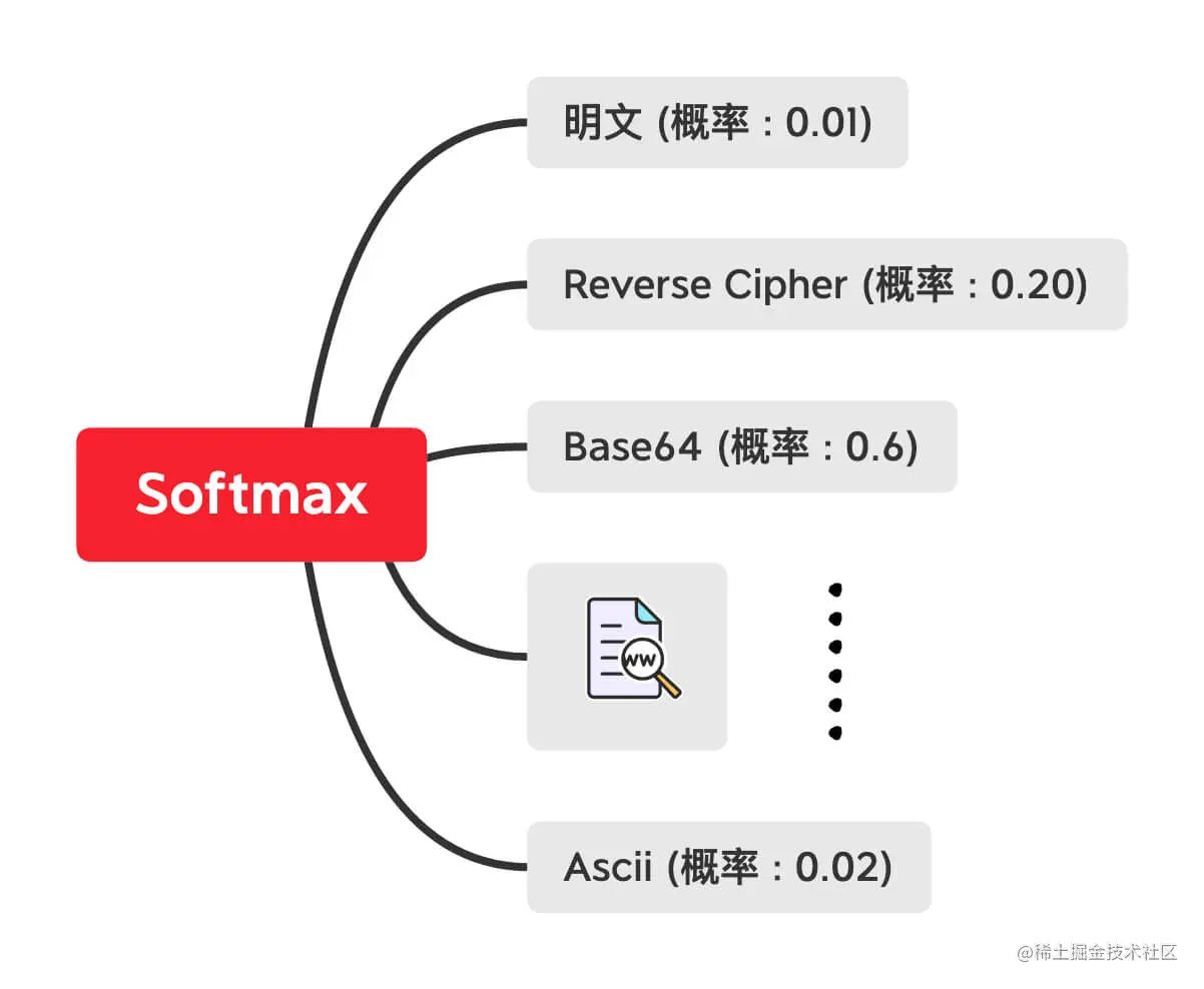 经过 softmax 输出每个类别的概率,然后从高到低开始遍历破解。