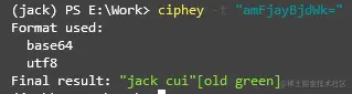使用 ciphey -t "amFjayBjdWk=" 命令,进行解码。
