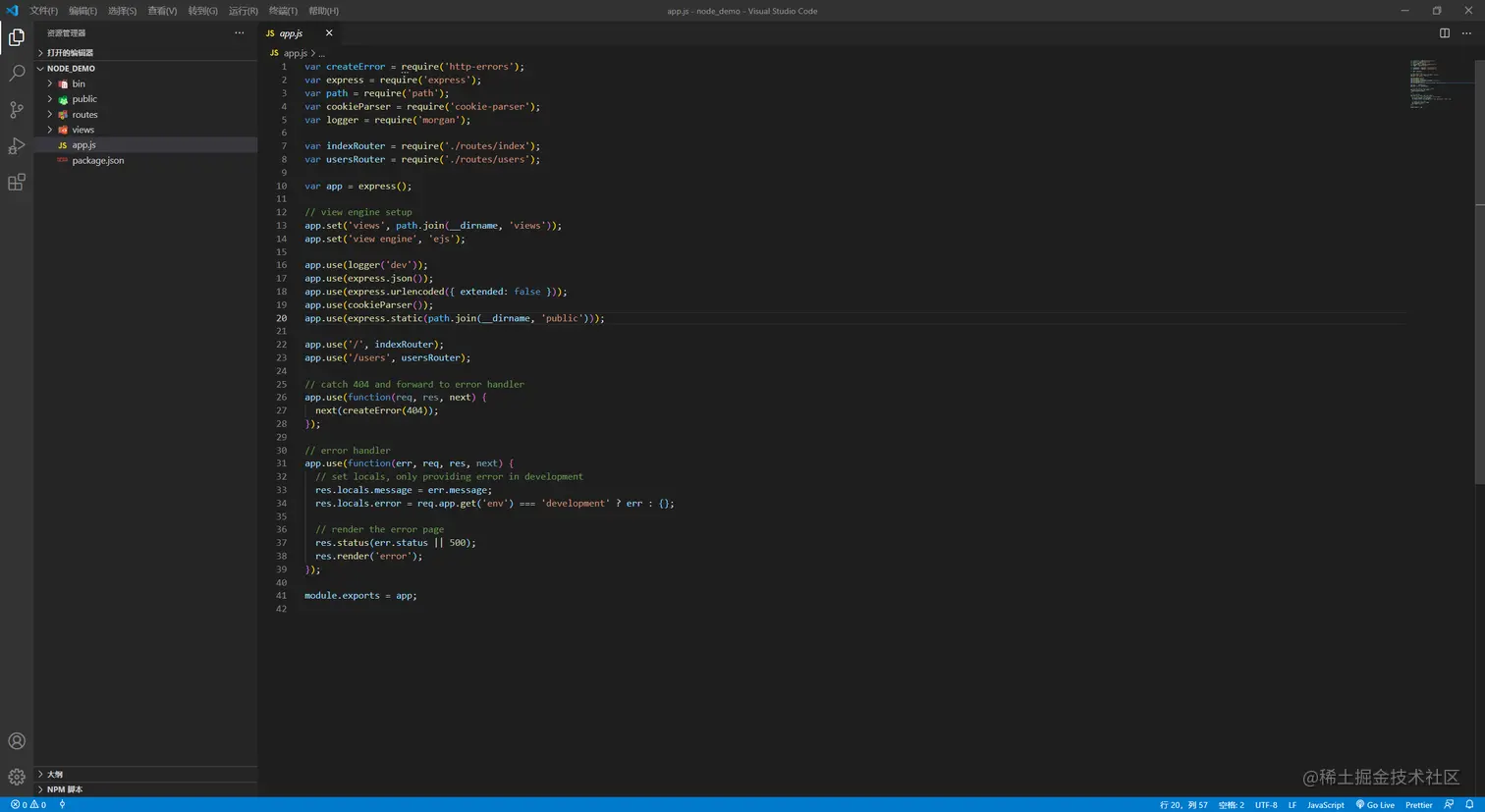 express node_demo -e (选择ejs模板) // 在项目名称的后面添加 -e 那么创建出来的模板文件就是.ejs类型,语法是与html相同的