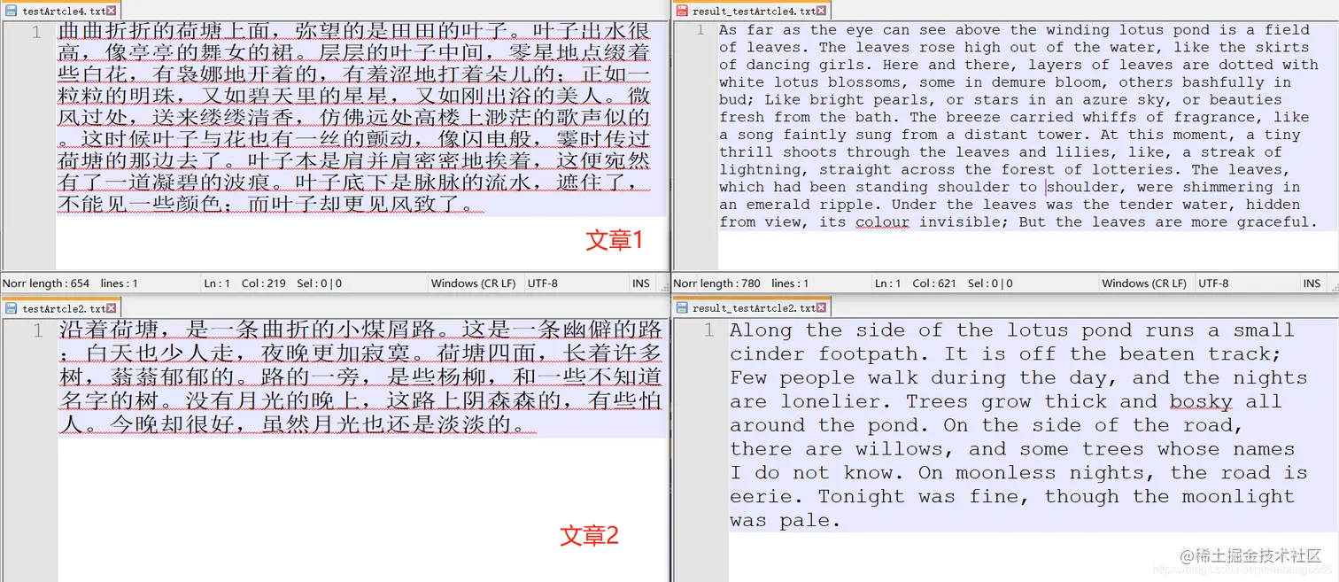 部分翻译结果展示(涉及工作内容的保密性,这里用荷塘月色作为样例):