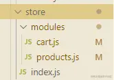 - Vuex 中创建两个模块,分别用来记录商品列表和购物车的状态,store 的结构: