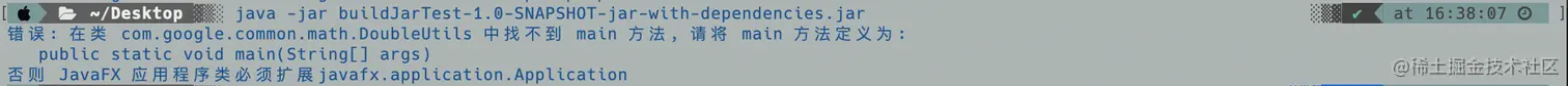不出所料,很神奇的报错了,错误提示内容大概是:主启动类中并不存在 main 方法。如果正确配置了 Main-Class 的话,正常情况下应该会执行 Main-Class 的 main 方法,但这里却告诉我们不存在 main 方法。