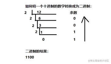 十进制数据转成二进制数据:使用除以2获取余数的方式(从最后一位读取)
