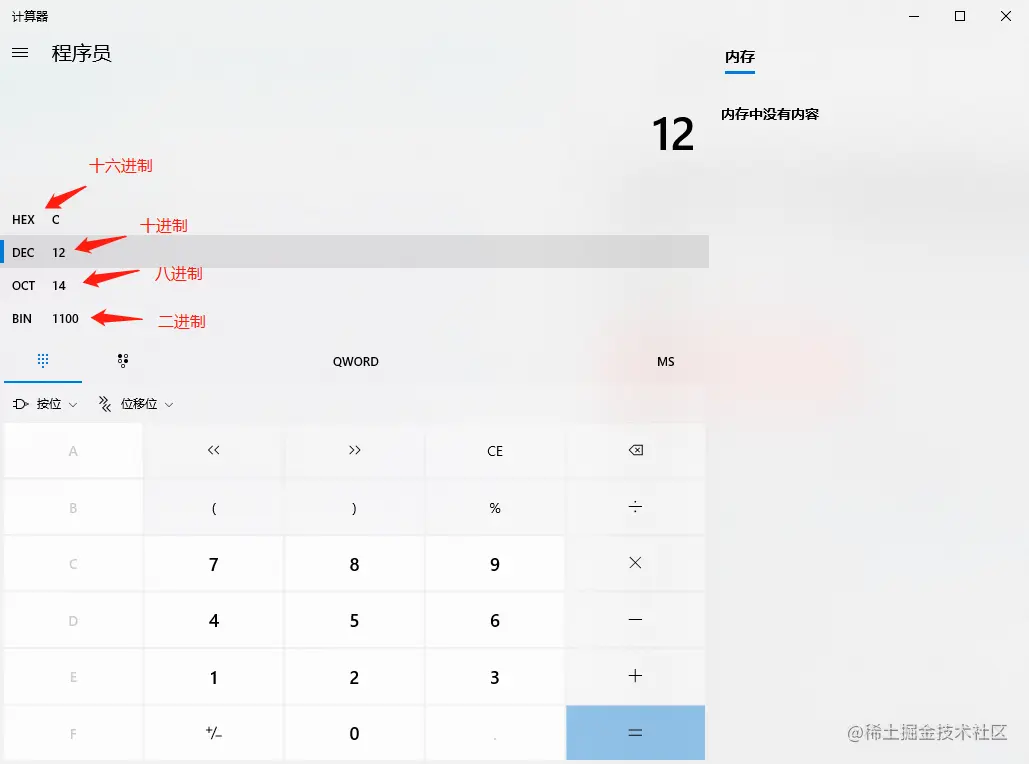 现代电脑中的计算器非常方便,已经添加了程序员模式,可以快速进行十六进制、十进制、八进制与二进制之间的转换: