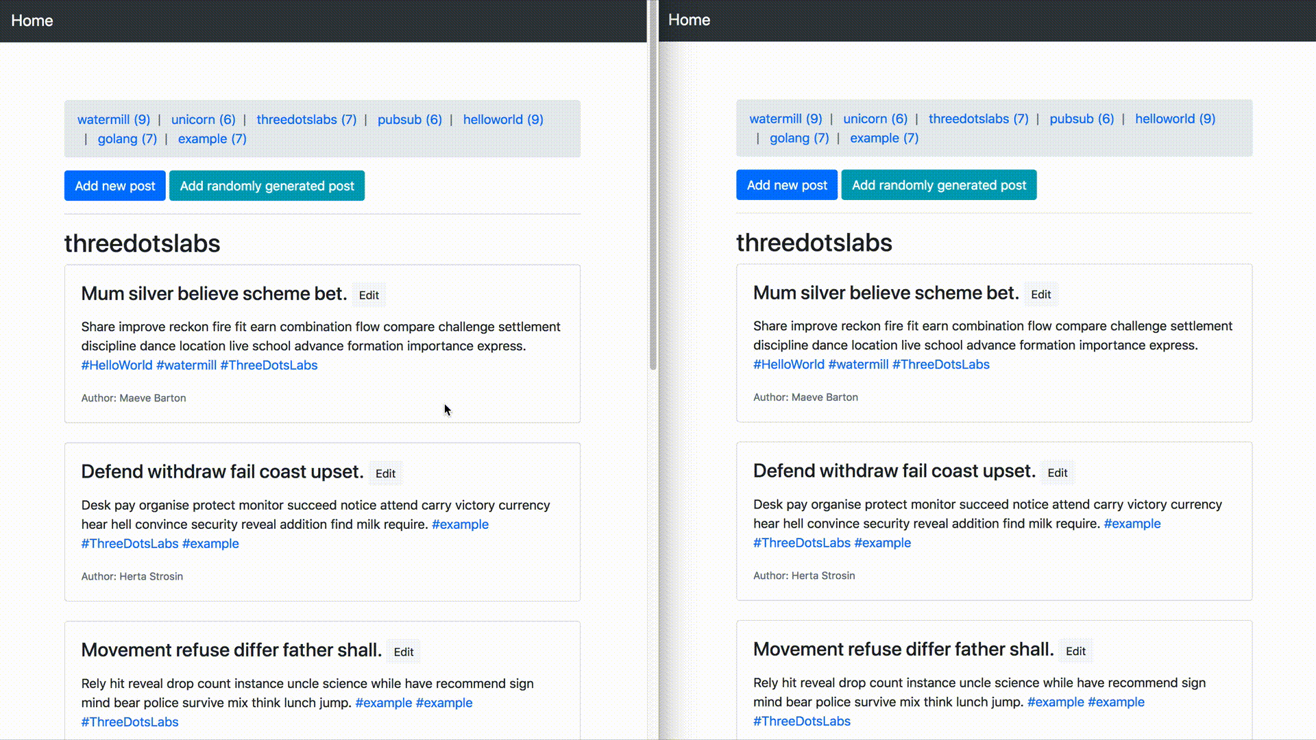 您可以添加自己的帖子或点击按钮获得随机生成的帖子。