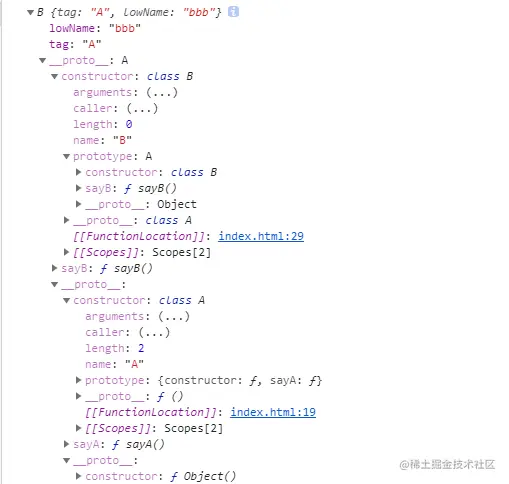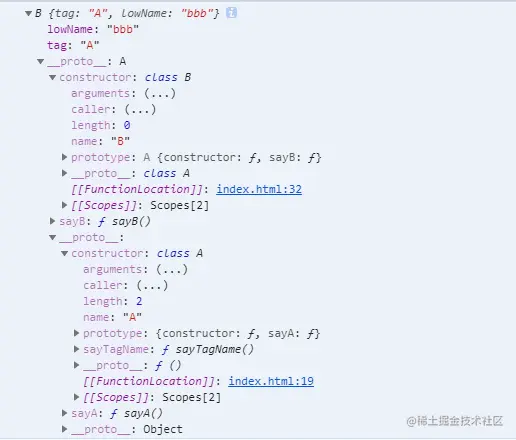 b.__proto__.constructor.sayTagName() // 'my tag is A'