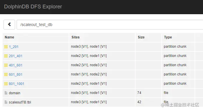 下面我们往集群上的数据库dfs://scaleout_test_db写入一些数据,验证新的数据节点是否已经启用。