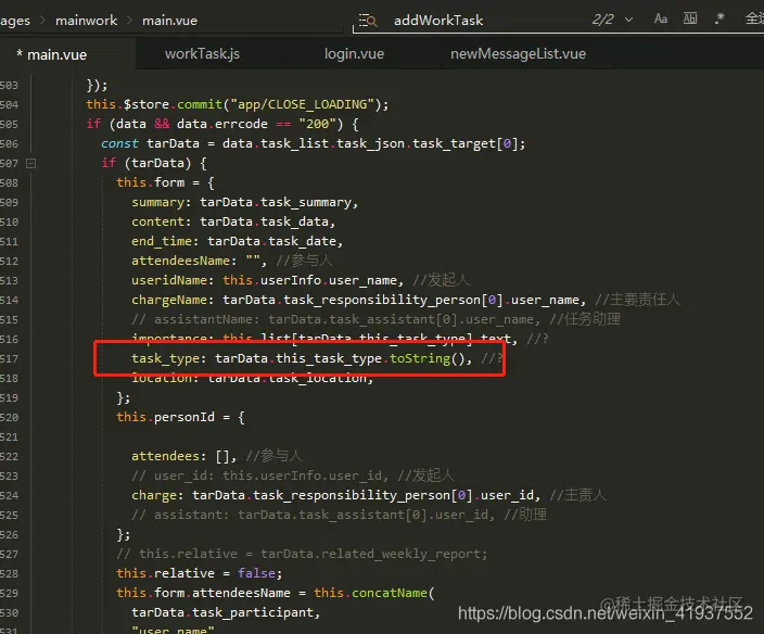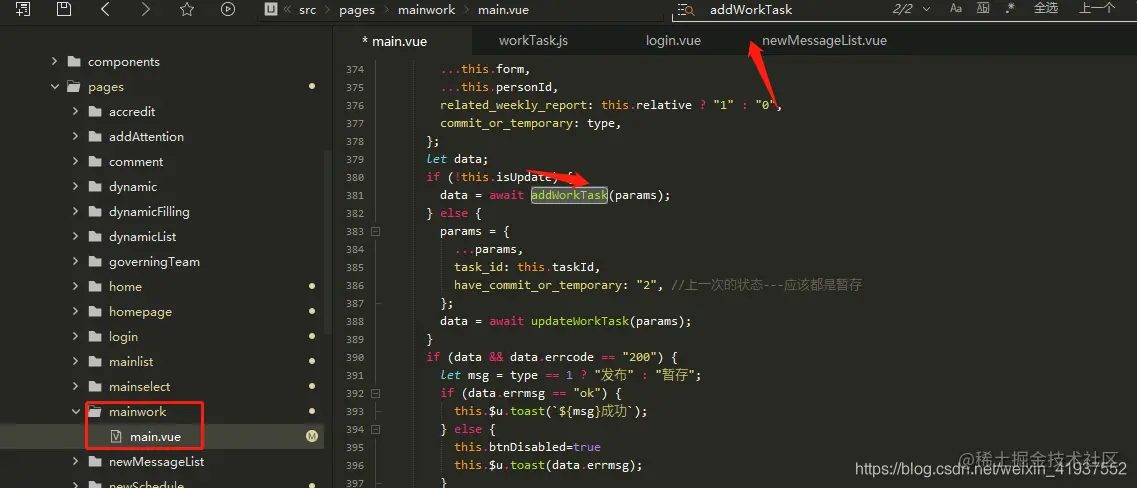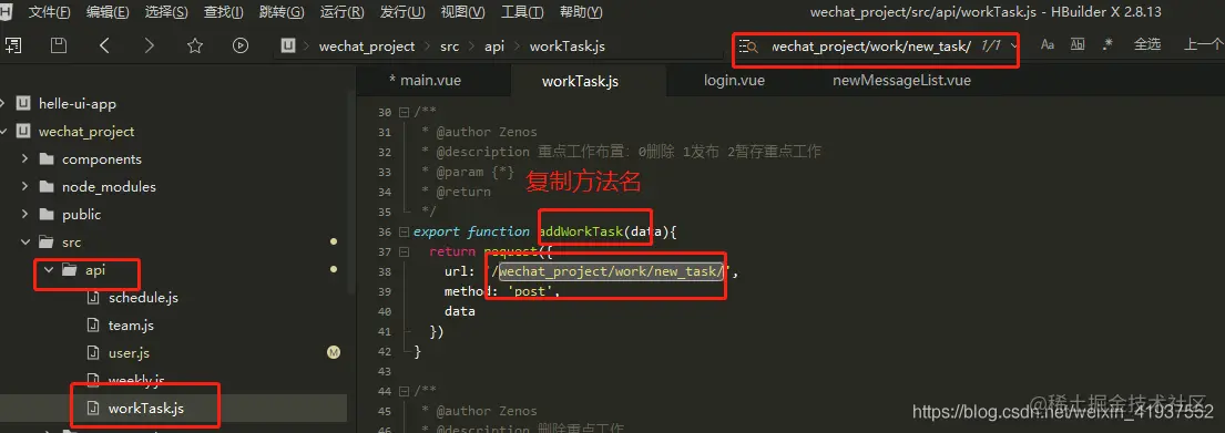 复制请求地址,去 API/workTask.js 检索,快捷键 Ctrl+F