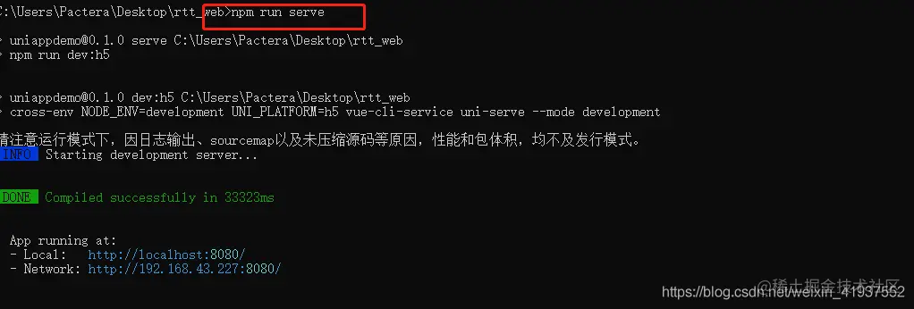 - 启动服务,npm run serve 。这里需要注意的是 serve 千万不要打成 server 啦,不然容易报错,这里还有两个小技巧,切换指定文件夹操作 cd /d + 任意文件夹,进入。受网络影响,依赖文件很容易下载不全,多试几次。一定要进入指定文件夹操作,不然会报错。