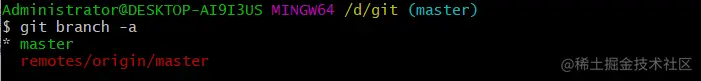 git branch查看分支列表 * 号标记为当前git 所在分支