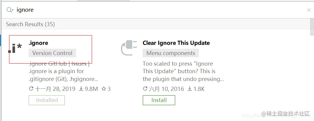 settings->plugins->Marketplace 搜索.ignore插件 如果之前没有使用过该插件 点击install按钮,idea会自动下载并执行安装操作,当插件安装成功后重启idea即可。