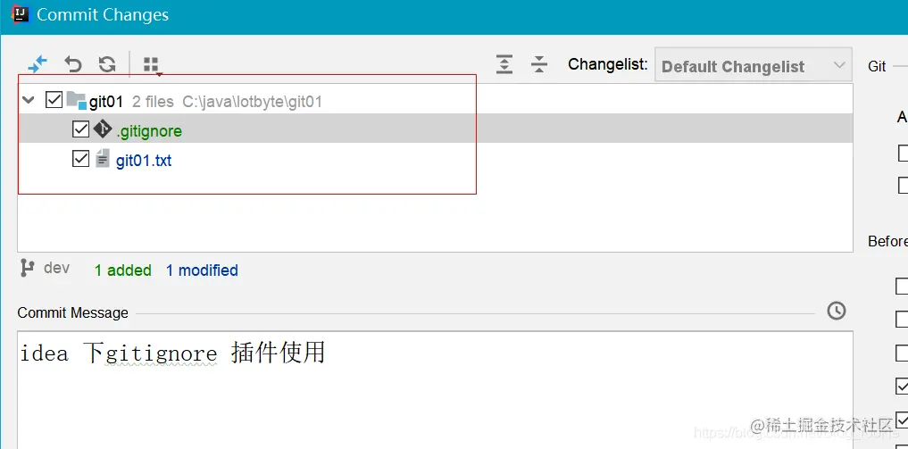 前面讲到dev 分支拉取与文件修改推送操作,遇到一个小的问题-在修改完git01.txt 文件后添加文件到暂存区后会将idea 本地环境相关配置文件一并提交,而这些文件没有必要提交 如果提交对于另外一方更新到本地后反而会影响项目运行 前面解决的方式是借助命令方式将暂存区文件转移到工作区来解决。