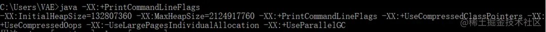 -XX:+PrintCommandLineFlags查看当前JVM设置过的相关参数