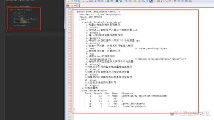 javap -v JvmCodeDemo.class >log.txt