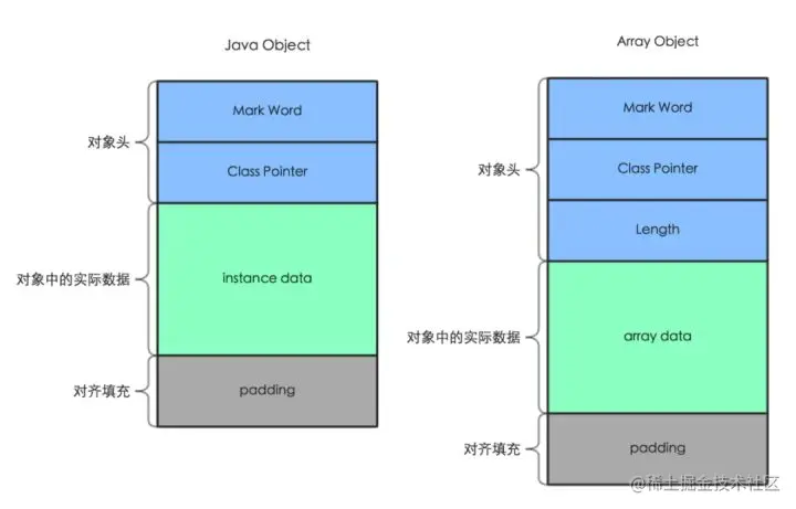 一个Java对象在内存中包括3个部分:对象头、实例数据和对齐填充。