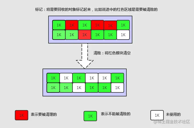 (2)老年代的垃圾收集,严格上来说其实不算是收集,它是一个“并发标记”的过程,顺便清理了一点点对象。