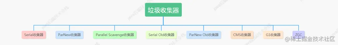 整堆收集器: G1,ZGC(因为不涉年代不在图中)