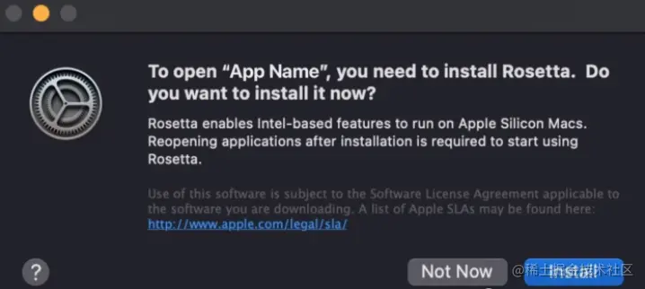 如果您在Apple Silicon Mac上有任何可用的x86 Intel应用程序,只需启动该应用程序将提示用户安装Rosetta。单击“安装”,然后将Rosetta 2软件安装到Mac上。