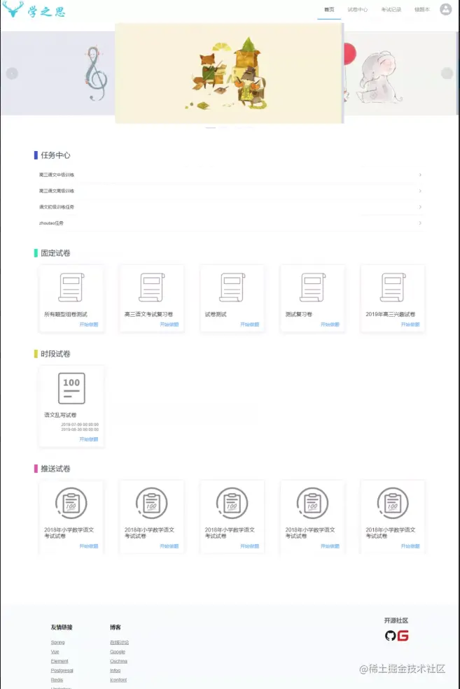 (3)试卷中心:包含了所有能做的试卷,按学科来过滤和分页