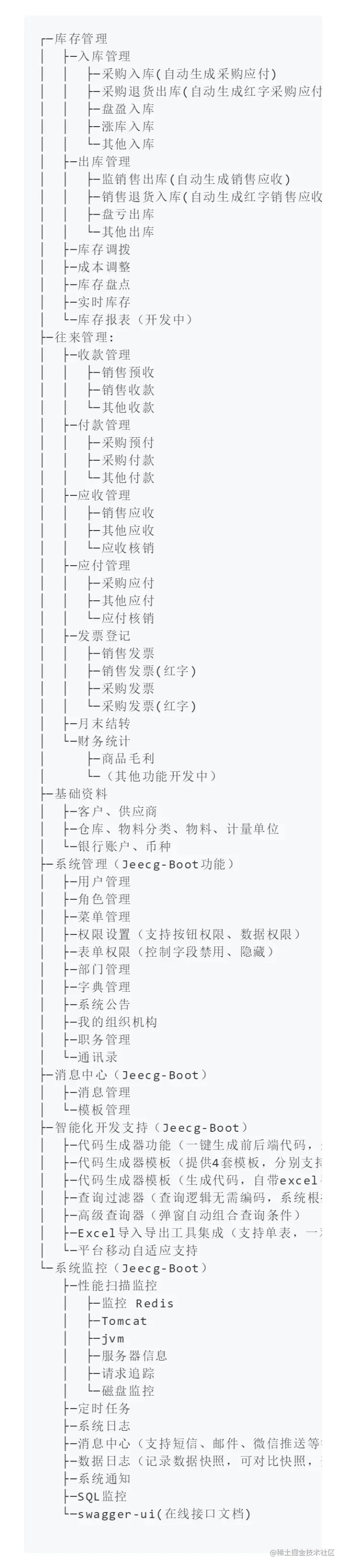 Finer进销存是一款面向中小企业的供销链管理系统,基于J2EE快速开发平台Jeecg-Boot开发,采用前后端分离架构:SpringBoot2.x,Ant Design&Vue,Mybatis-plus,Shiro,JWT。项目基于十多年的中小企业管理经验,由ERP领域的资深专家设计;产品分为基础版、标准版、企业版三个版本,可适应不同的管控流程;对于灵活多样的个性化的管理需求,在Jeecg-Boot支撑下,利用其强大的代码生成器,无需写任何代码就可以快速实现大多功能,也可手工加入复杂的业务逻辑!整理了100+个Java项目视频+源码+笔记