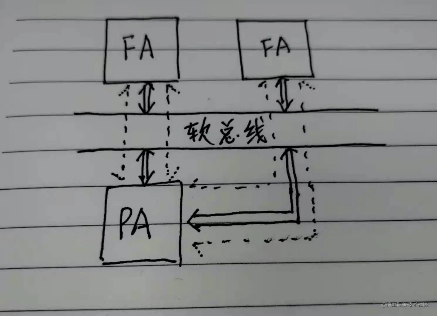 整个通信过程,是通过鸿蒙分布式软总线来完成的。