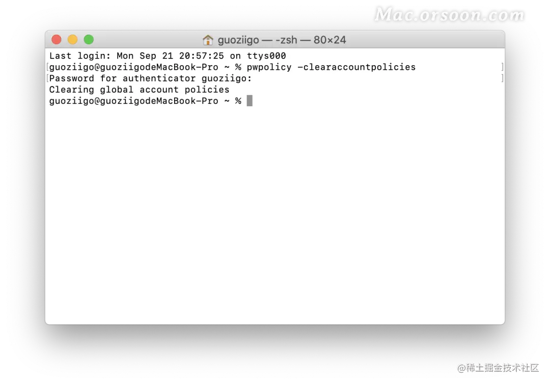 第四步:出现(Clearing global account policies)就代表已经生效了