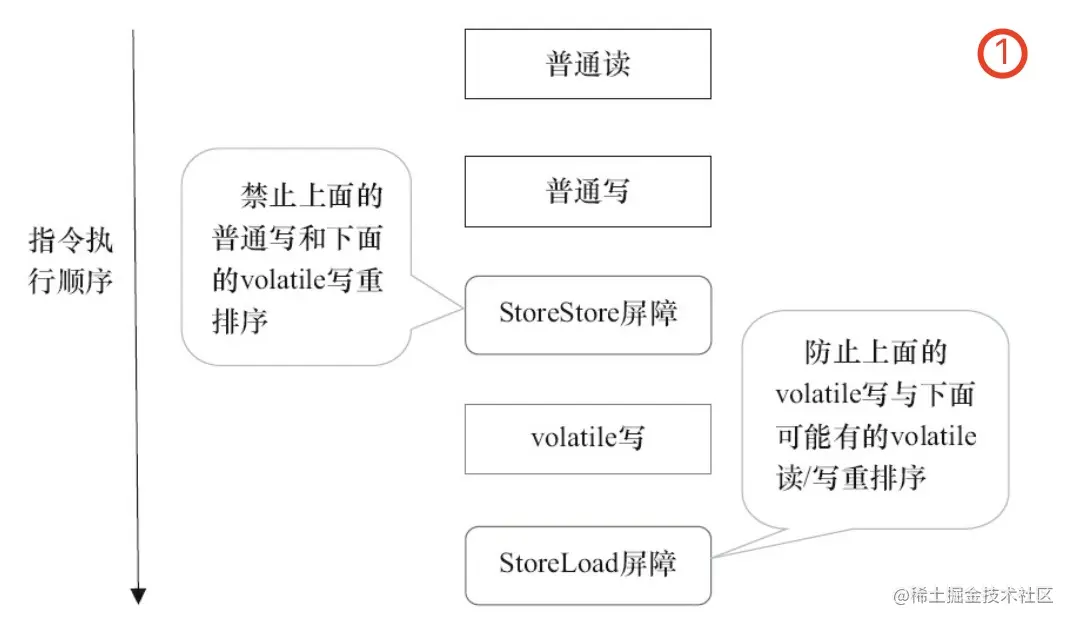 下面是偷的两张图,直观看下内存屏障在volatile中的使用。
