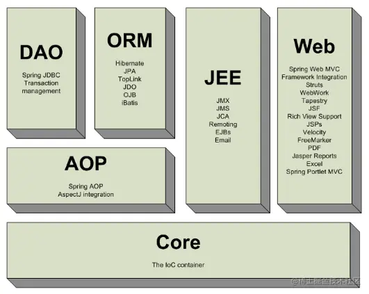 - 面向切面AOP:Aspect Oriented Programming,就是通过预编译的方式在运行期使用动态代理实现的一种技术,主要作用于控制事务的传播,如一套下单事务中: