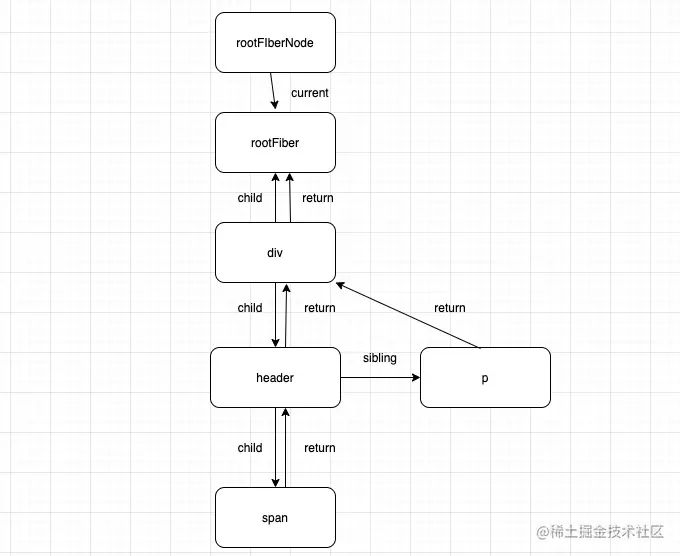 - 归阶段(completeWork)处理span、header,生成dom,赋值为stateNode属性,并挂载到父节点的dom上,header有一个sibling节点,所以进行3流程