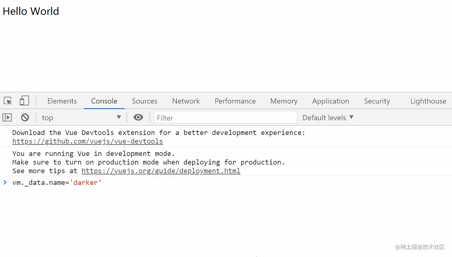 vm._data.name='darker' // 修改js中变量的值