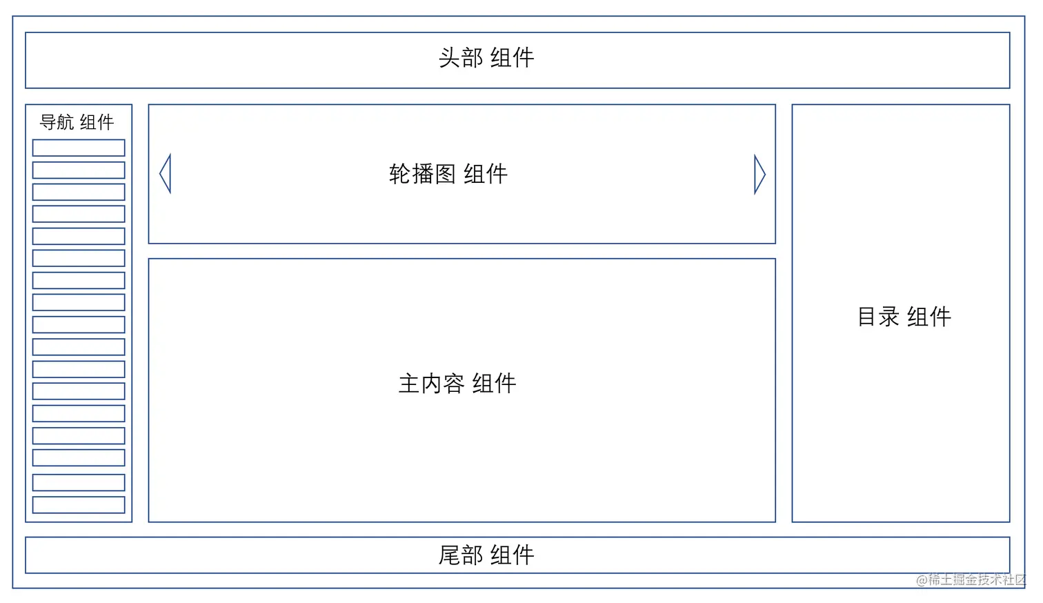 类似于DTL中的include,每一个组件的内容都可以被替换和复用