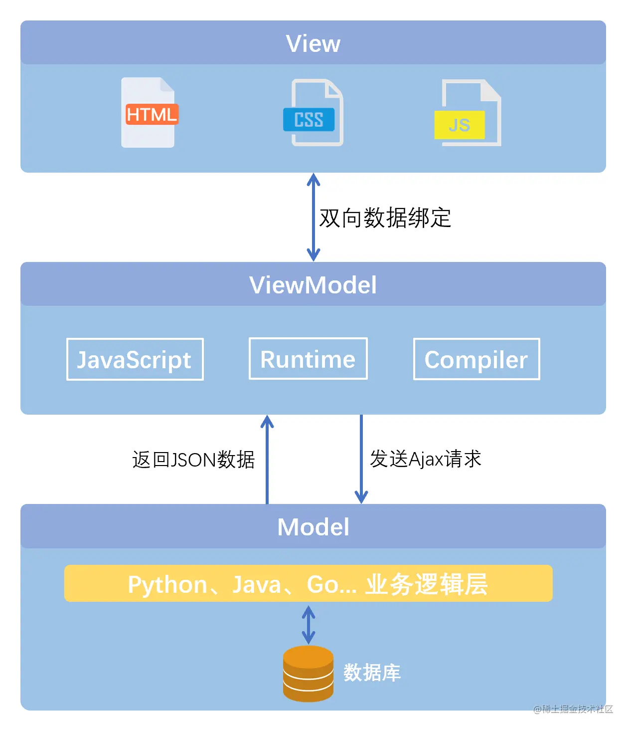 MVVM 是Model-View-ViewModel 的缩写,它是一种基于前端开发的架构模式,是一种事件驱动编程方式