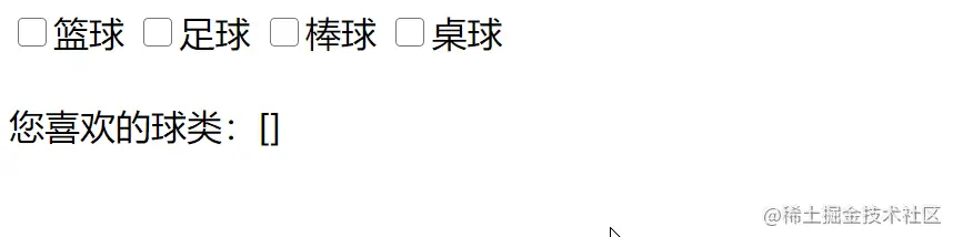 <input type="checkbox" v-model="many" value="篮球">篮球