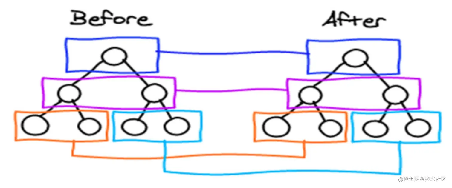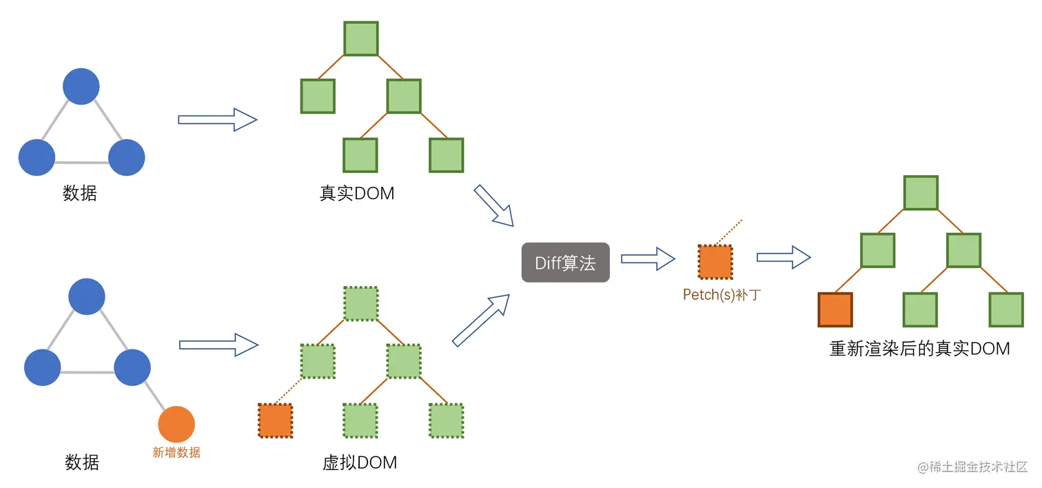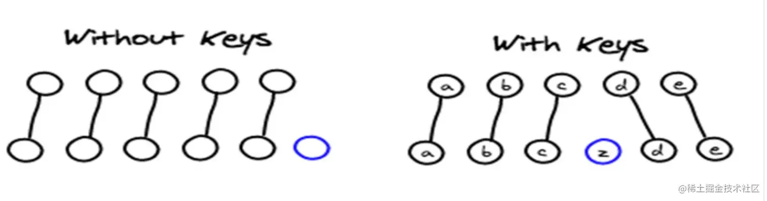 key,让key值唯一) - 通过组件/标签进行比较:然后进行替换