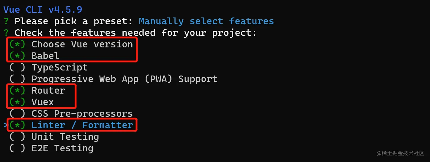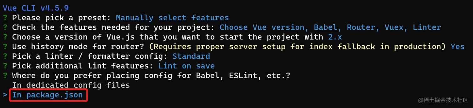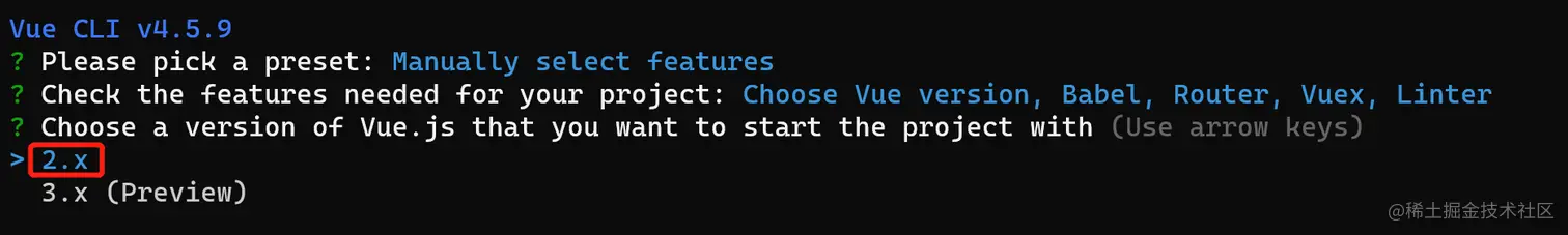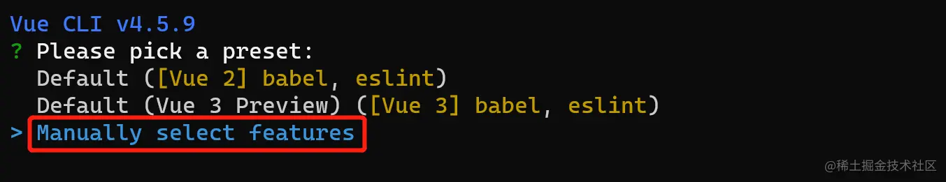① 通过 @vue/cli 实现的交互式的项目脚手架