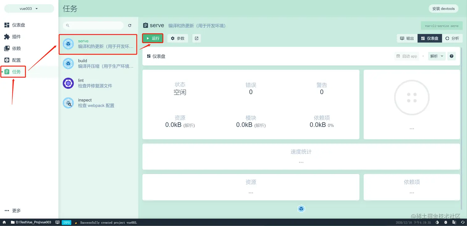 10.点击:任务 - serve - 运行