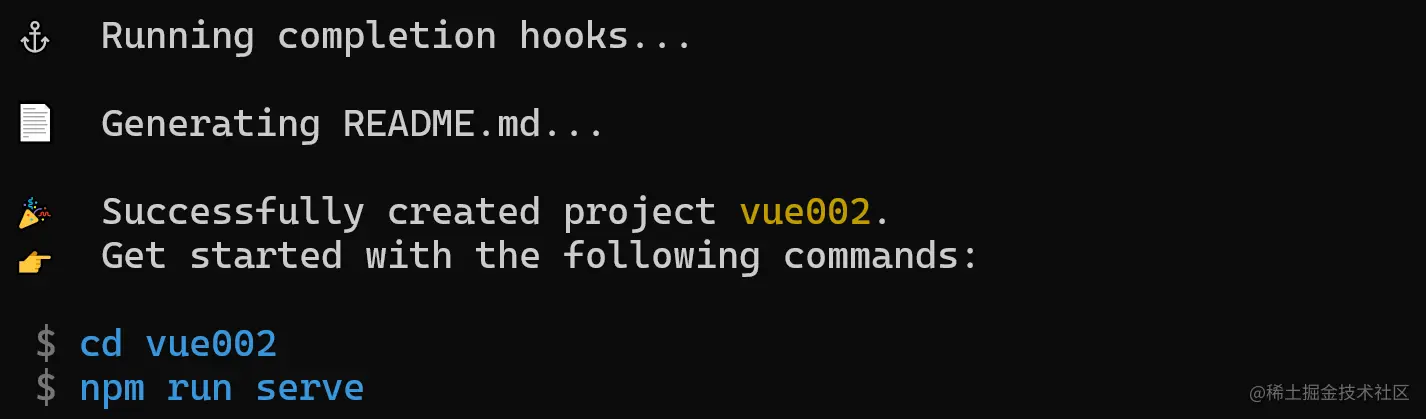 npm installfor you after the project has been created? (recommended) (选择no,项目创建完成直接初始化,手动执行 运行结果)