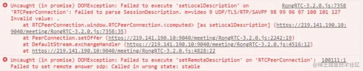 融云 RTC SDK 报错 Failed to execute 'setLocalDescription' on 'RTCPeerConnection': Failed to parse SessionDescription. m=video 9 UDP/TLS/RTP/SAVPF 98 99 96 97 100 101 127 Invalid value: