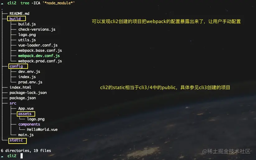 - cli2中的static相当于cli3/4中的public,最终都是原封不动的被复制到dist目录