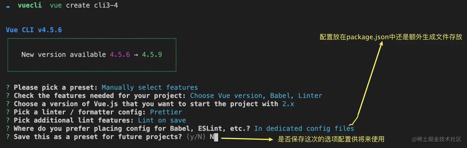 // 使用cli3或者4创建vue项目命令