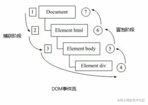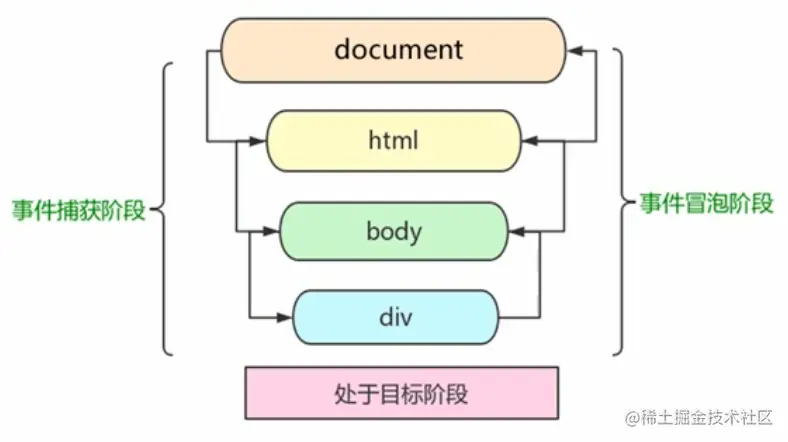 - 事件捕获:网景最早提出、由DOM最顶层节点开始,然后逐级向下传播到最具体的元素接收的过程。