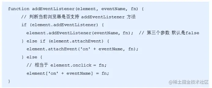 - eventNameWithOn:事件类型字符串,比如onclick、onmouseover、这里要带on