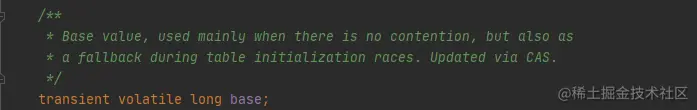 LongAdder维护了一个延迟初始化的原子性更新数组(默认情况下Cell数组是null)和一个基值变量base。由于Cells占用的内存是相对比较大的,所以一开始并不创建它,而是在需要时创建,也就是惰性加载。