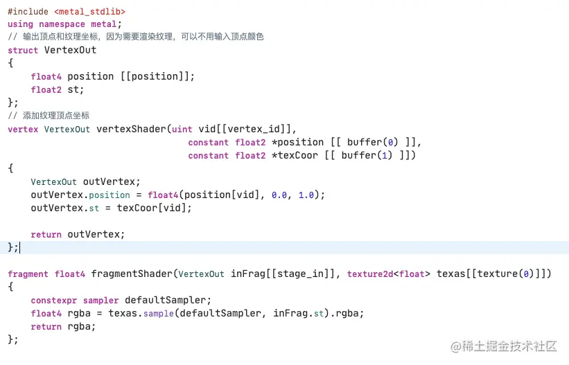 接下来就是需要将需要渲染到屏幕的图片文件加载成纹理MTLTexture对象,用于后续的MTLRenderCommandEncoder装载,这个留到后面讲。