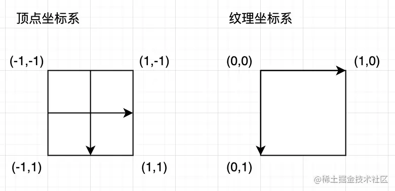 正常情况下,顶点坐标和纹理坐标是一一对应的,顶点坐标规定了渲染时落到画布上的具体位置,纹理坐标规定了落到具体位置的该点相对于原数据(这里指上述加载纹理的texture对象)的采样范围。