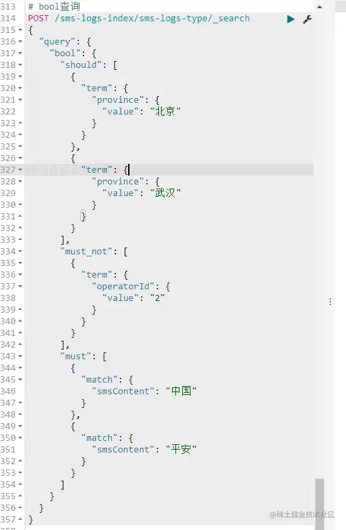 布尔match查询(SQL 的in条件)