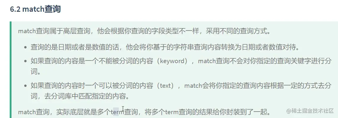 2、如果查询的内容是不能被分词的内容(keyword),match查询不会对你的指定查询关键字进行分词